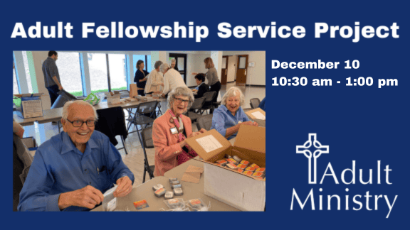 Our Adult Fellowship Luncheon for senior adults takes place on a Wednesday every two months and we typically have a speaker. Keep an eye on the Events page for upcoming Adult Fellowship Luncheons.
